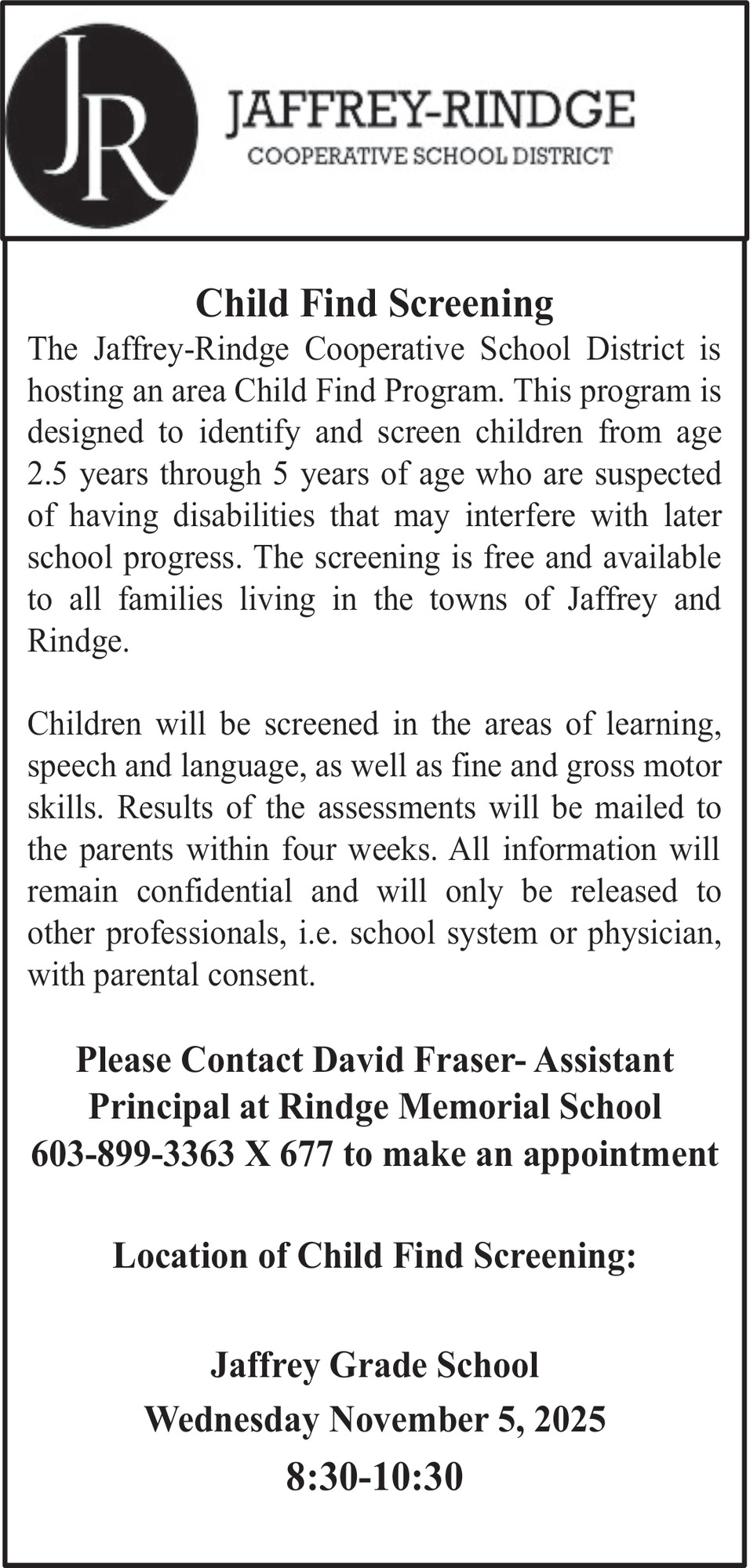 603-532-812218 School StJaffrey, NH 03452(Jaffrey Grade School Child Find)