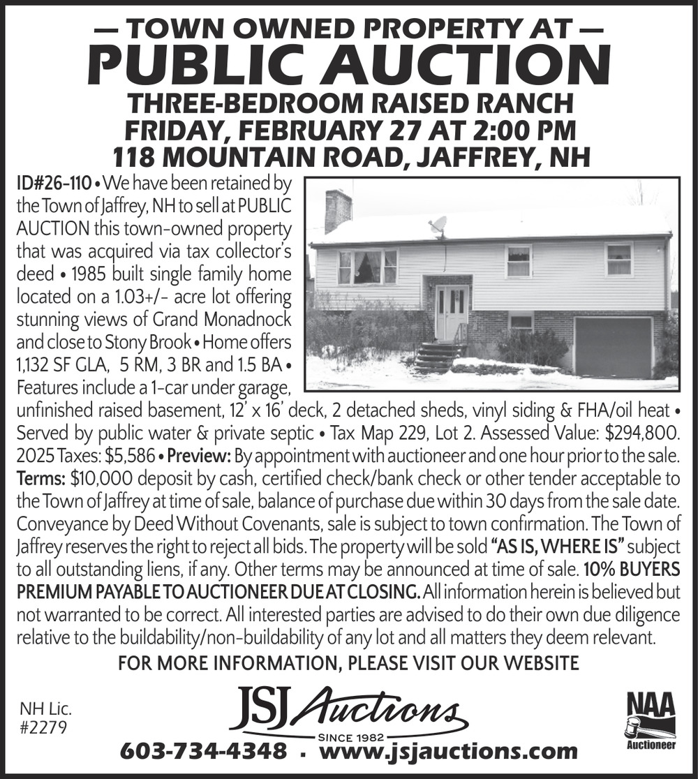 Feb 05, 2026. JSJ Auctions Auction Ads from Monadnock Ledger-Transcript