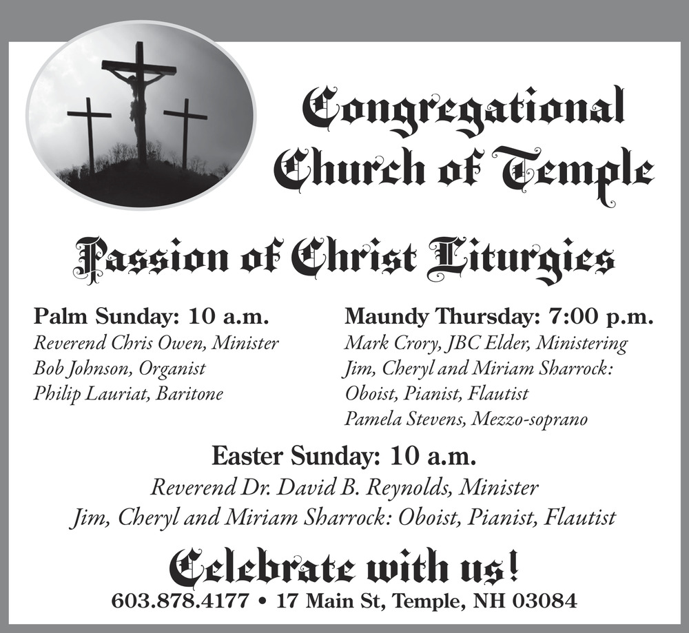 Mar 24, 2026. The Congregational Church Of Temple Church Ads from Monadnock Ledger-Transcript