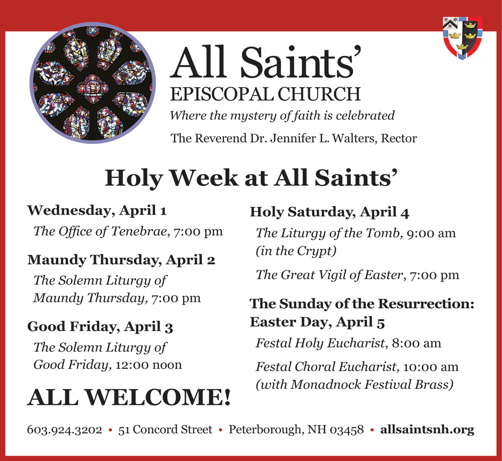 Mar 31, 2026. All Saints' Episcopal Church Church Ads from Monadnock Ledger-Transcript