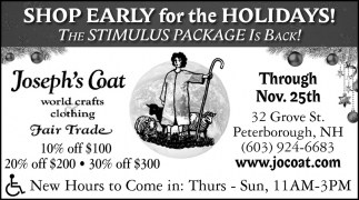 Nov 12, 2020. Joseph's Coat Household Goods Ads from Monadnock Ledger-Transcript