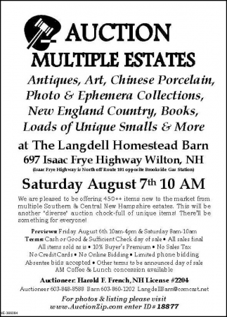 Aug 03, 2021. Harold F. French Auction Ads from Monadnock Ledger-Transcript