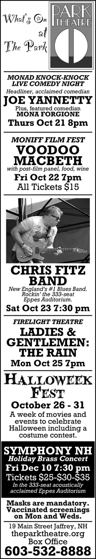 Oct 21, 2021. Park Theatre Shows & Theater Ads from Monadnock Ledger-Transcript