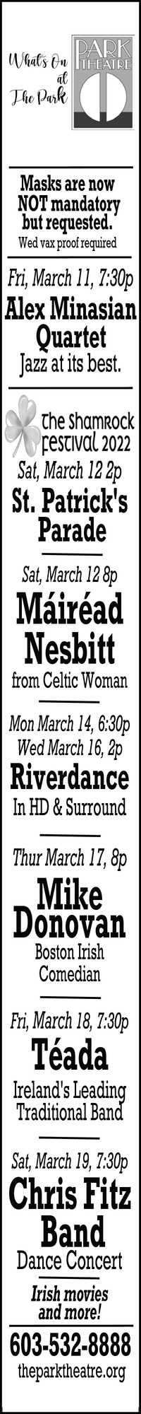 Mar 10, 2022. Park Theatre Shows & Theater Ads from Monadnock Ledger-Transcript